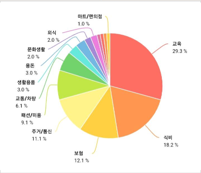아이들 교육비가 두 배로 껑충 뛰는 바람에 마이너스를 기록하게 되어 정신을 바짝 차리고 지출관리를 해야했어요.