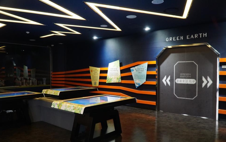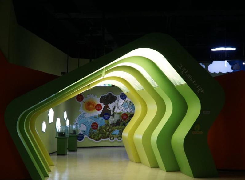 녹색터널을 통과하면 '그린에너지관' 이 나오고 태양열에너지, 수력에너지, 지열에너지 등 그린에너지에 대해 자세히 알수 있다. 그리고 전시관이 끝나면 아이들이 놀 수 있는 플레이존이 나온다. 이곳에서 퀴즈 및 게임을 할 수 있다.
