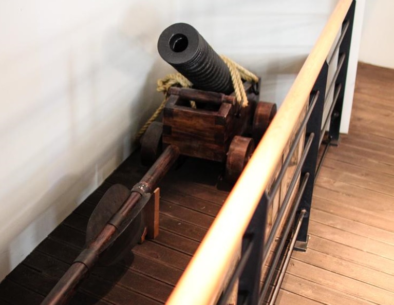 로비에 있는 복제유물이다. 최무선장군이 개발한 대형총통 중 두 번째로 큰 우리나라 고유의 화포로 '지자총통'이라고 한다.