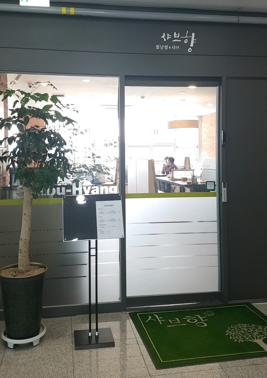 경북도청점 샤브향이 들어선지 1년이 다 되었지만 오늘 처음 이용해봤다. 이웃동생이 몸 보신을 해야한다고 푸짐하게 먹자고 나오란다. 가을도 되고 쌀쌀한 바람이 부는데 나도 따뜻한 국물요리가 먹고 싶었던 참이었다. 경북도청점 샤브향은 우방 5차 맞은 편 건물에 있다. 샤브향 입구에 도착한 우리는 점심특선 중에 가장 무난한 월남쌈 쌰브로 먹기로 했다. 뭐니뭐니해도 쌈사서 먹는게 최고니깐.