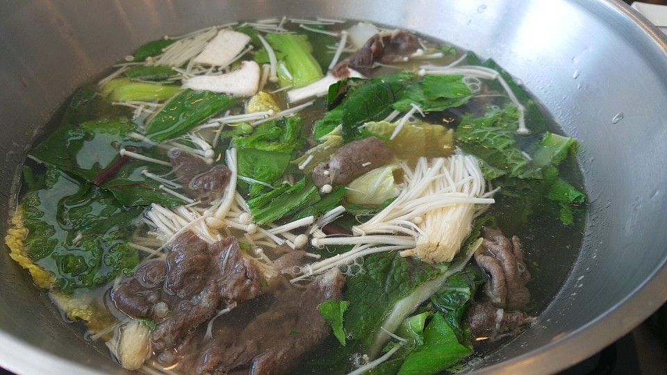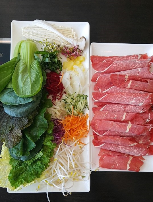 싱싱한 야채와 신선한 소고기를 보니 군침이 돈다. 역시 샤브샤브는 뭐니뭐니해도 신선도인 것 같다. 갖가지 채소를 담아주셨지만 우리는 부족하여 버섯종류와 배추, 그리고 숙주나물도 좀 더 리필을 해왔다.