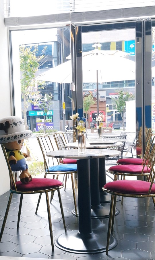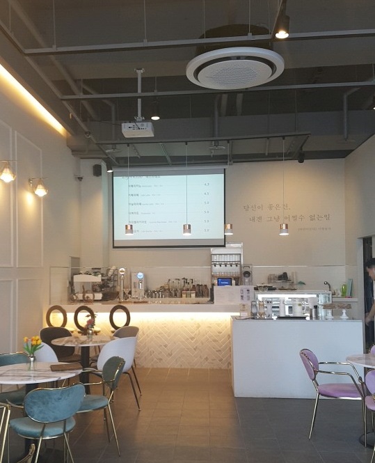 카페 들어가니 주인이 조용히 카페를 지키고 있었다. 실내 왼쪽에는 파스텔 톤의 핑크와 블루가 적절히 섞여있어 내부가 깔끔하고 테이블과 의자 모두 화사하고 고급스럽다.
