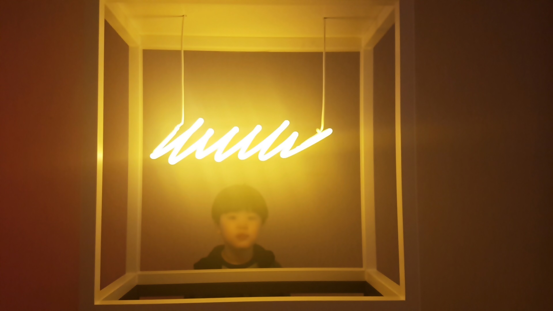 실제 네온사인 상자 속에 아이의 눈을 가리고 사진을 찍고 싶었지만 키가 작아서 작품으로서는 실패했어요. 하지만 아이에겐 좋은 추거이 되겠지요. 이번 전시회에서 그림뿐 아니라 다양한 재료로 작품을 만들 수 있다는 것을 보여줬다는 것만으로 만족하기로 했어요.