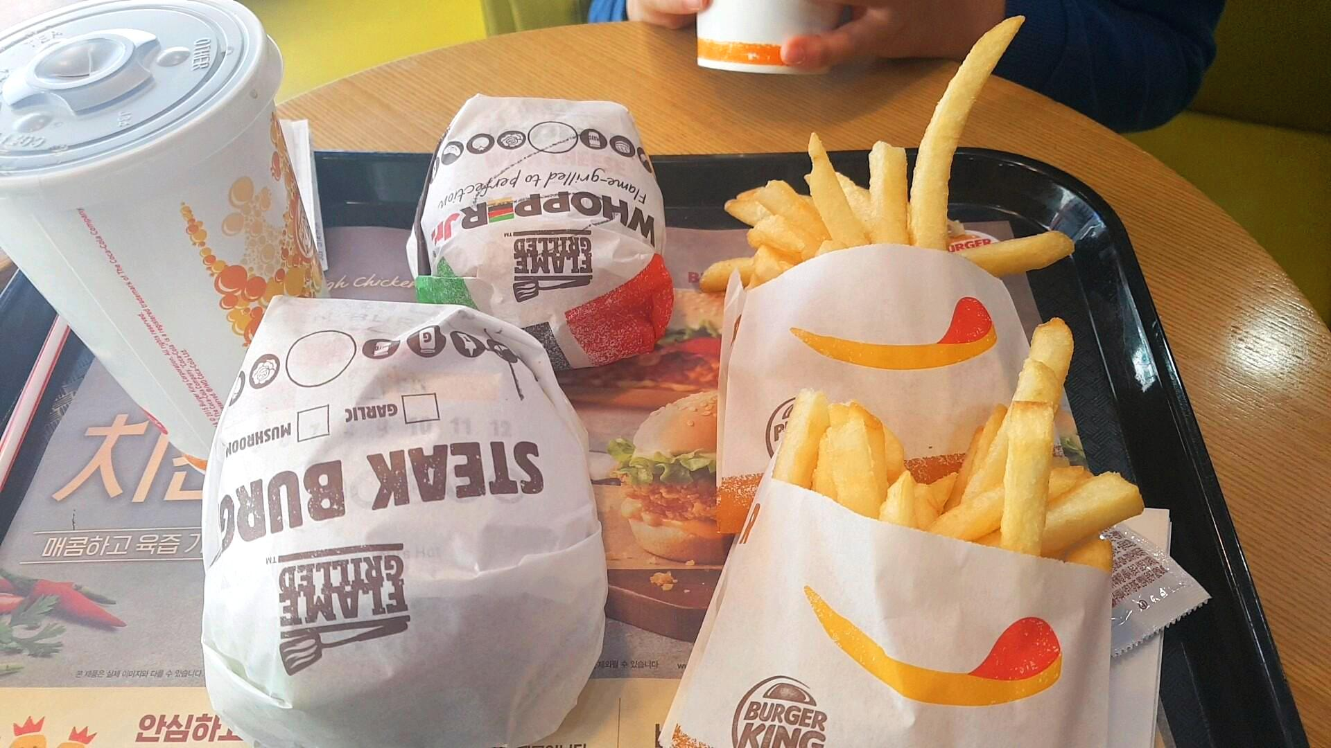 점심 시간이 되어 배고픈 아이가 먹고 싶다던 감자튀김. 버거는 필요없고 오직 감자튀김을 좋아하는 작은 아이. 그래서 버거와 감자튀김이 맛있는 「말콥버거」 집을 찾아갔지만 만원이라 아쉬운 마음을 뒤로하고 가까운 「버거킹」 으로 갔어요.