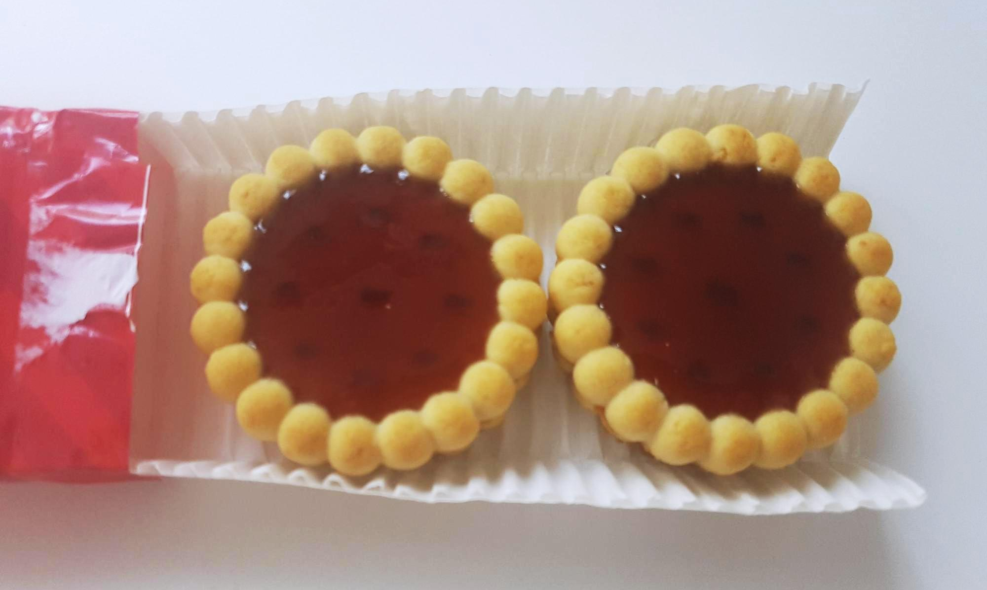 비닐 포장을 뜯으면 포장 안에서 요렇게 예쁘게 빼곰히 나와있어서 보는 내내 먹고 싶다는 생각이 듭니다. 그리고 빨갛고 해바라기같은 모양이 생각나게 하는 빨간 타르트가 줄지어 나오는데 딸기쨈이 흘러내리지도 않고 적당히 굳어있습니다.