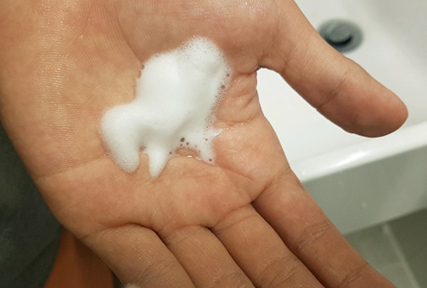 거품이 풍성하고 부드럽지만 많이 미끈거리지 않아요. 여드름용 화장품이라서 그런지 손으로 비벼 얼굴에 바르는데 유분기가 별로 없고 깔끔한 느낌이었습니다.