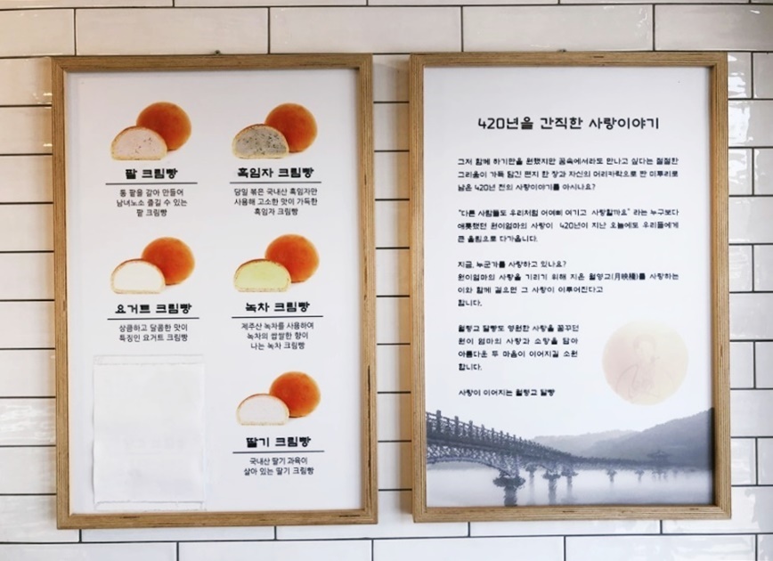 월영교 주차장 입구 맞은편에는 여러 식당과 카페가 자리를 잡고 있어요. 그곳에 달그림자카페가 있는데 그 곳 바로 옆에 작은 월영교달빵 가게가 함께 있어요. 달그림자카페에서 커피와 함께 달빵을 판매하는 줄 알았는데 달그림자카페로 들어갈려고 하니 월영교달빵 입구는 왼쪽에 있다고 가리키고 있었죠. 처음이라 헷갈렸어요.