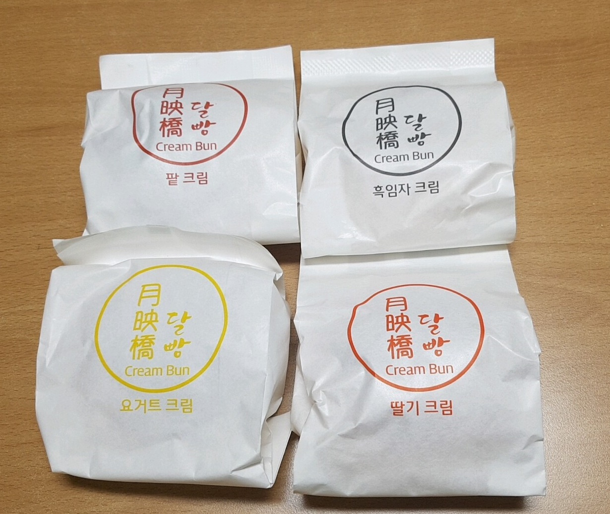 월영교달빵은 하나하나씩 개별 포장이 되어 있는데 시원하게 먹어야 해서 그런지 비닐포장이 아니라 종이포장으로 되어 있네요. 두 아이에게 맛을 고르라고 하니 취향이 또 나타나요. 큰 아이는 요거트랑 흑임자를 고르고 작은 아이는 팥크림이랑 딸기크림 맛을 골랐어요. 다행히도 취향이 겹치지 않아서 싸울 일이 없어요.
