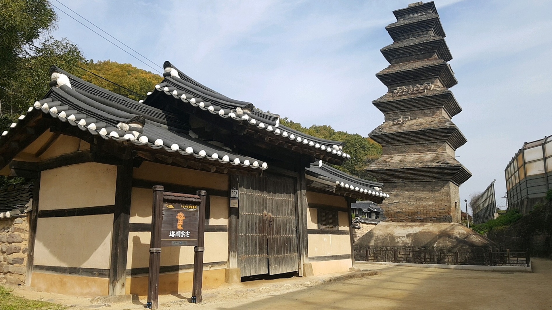 임청각 옆에 작은 길로 다시 내려오면 고성이씨의 고택이 있어요. 고택의 정면에 '안동법흥사지 칠층전탑' 이 있는데 이 탑도 국내에서는 가장 크고 오래된 전탑이라고 해요. 8세기 통일신라시대에 처음 건립되었다는 법흥사가 있었다는 것으로 추측은 되지만 탑 이외의 유물은 남아 있지 않고 고성이씨 탑동파 종택이 이 곳에 위치하고 있지요.