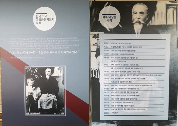 안쪽 행랑채에 전시해 놓은 역사유물들이 있었는데 이 곳은 정말 엄숙함이 느껴지는 곳이에요. 석주이성룡선생과 그의 가족들이 나라를 위해 어떤 일을 했는지 한 눈에 알 수 있는 곳이었어요.