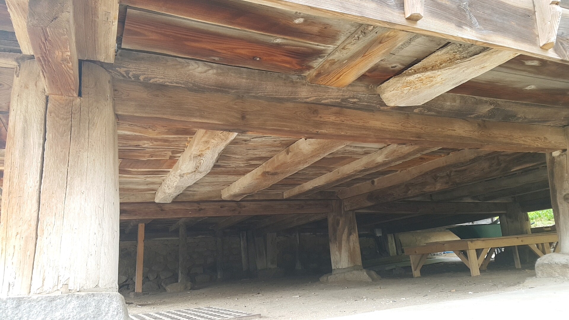 군자정 누의 바로 아래 대청마루 밑을 보았는데 어르신들이 말씀하시기를 중국과 일본의 마루는 자객이 들어올 수 있기 때문에 삐걱거리는 소리가 나게 만들었고 우리나라 마루는 소리가 안나게 단단하게 만들어졌다고 했어요.