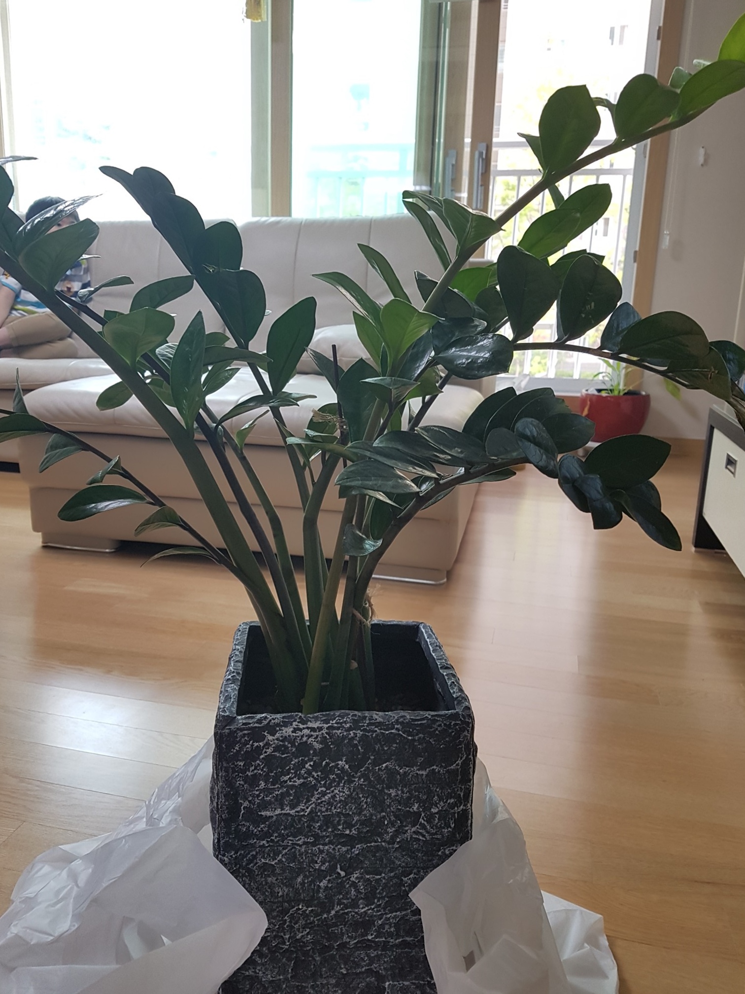 금전수는 4년전에 아르바이트 했던 곳에 가게주인 언니가 개업축하 선물로 금전수를 많이 받았다며 저에게 화분 하나를 나눠주셨어요. 그리고 4년동안 키웠더니 올해 봄에 대나무처럼 쭉 뻗어 올라 휘어지는 모습에 안되겠다 싶어 집에 있는 중형화분 세군데로 나누어 분갈이를 했었어요.