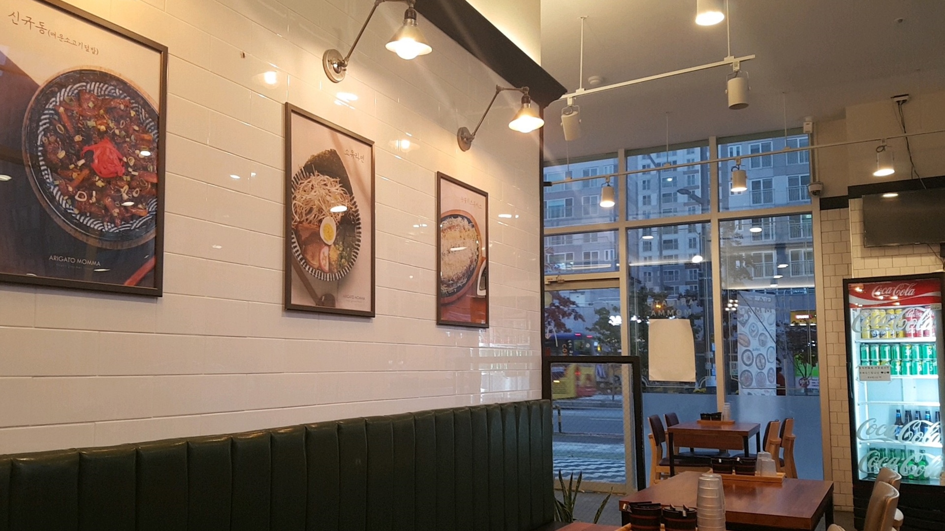 실내 분위기는 군더더기 없이 깔끔하네요. '고마워' 란 문구가 인상적이에요. 음식을 주문하기 전에 큰 아들한테서 학교 지금 마쳤다고 전화가 왔어요. 어디냐고 했더니 식당 근처를 지나가고 있더라구요. 그래서 학원가야할 시간이 30분 정도 남았길래 밥 먹고 가라고 불렀어요.