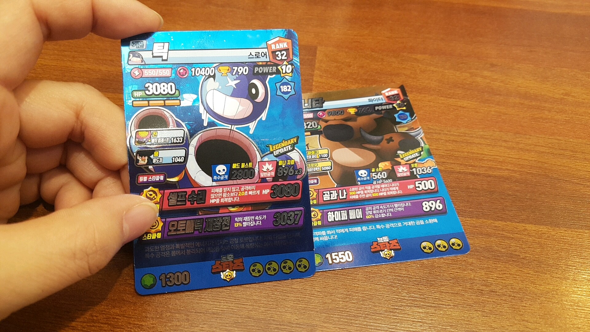 작은 아이가 문구점에서 꼭 사달라고 졸랐던 브롤스타즈 카드에요. 학교 반친구들이 반짝반짝 빛나는 카드를 가지고 왔는데 자기도 갖고 싶다고 해서 사줬어요. 열어보니 홀로그램으로 되어 있는데 사진 상으로는 잘 보이지 않네요.