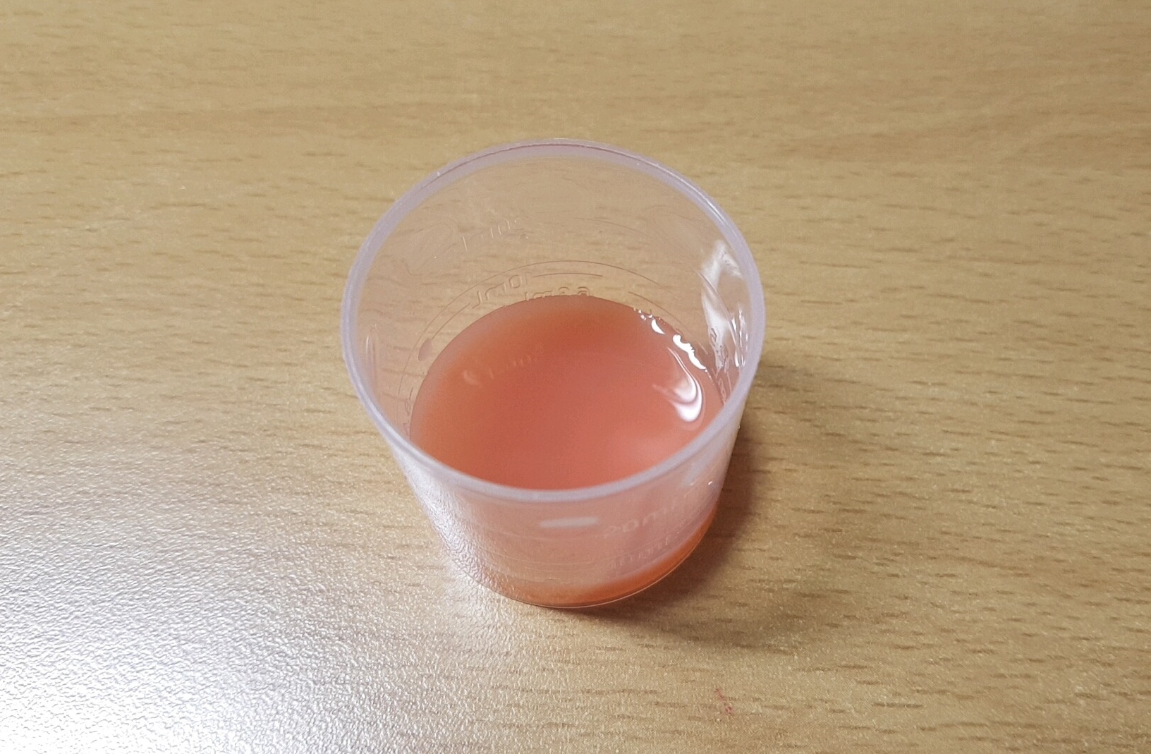 실제 색은 연한 핑크빛과 주황빛이 나고, 맛은 포도맛이에요. 먹을 때는 맛있지만 넘기고 나면 먼지 맛이 난다고 해야할지 하여튼 뒷 맛은 별로지만 익숙해지면 괜찮더라구요.