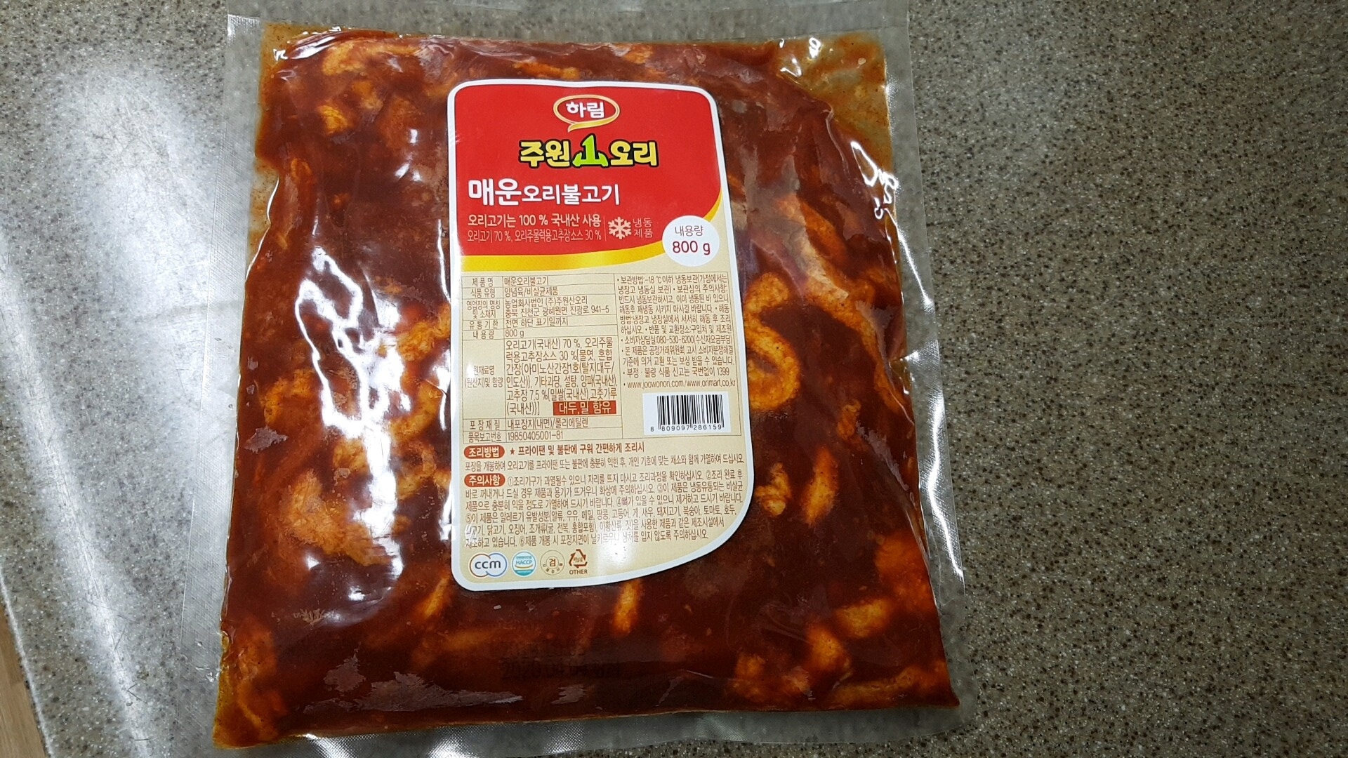 식당 못지않은 맛을 보장할 수 있는 것은 마트 덕분이지요. 마트에 가면 하림에서 나오는 오리불고기가 있어요. 하지만 이것을 그냥 구워 먹으면 맛이 별로랍니다. 저도 해봤어요. 하지만 식당에서 사 먹는 것처럼 색깔이 진하고 깊은 맛은 나지 않았어요.