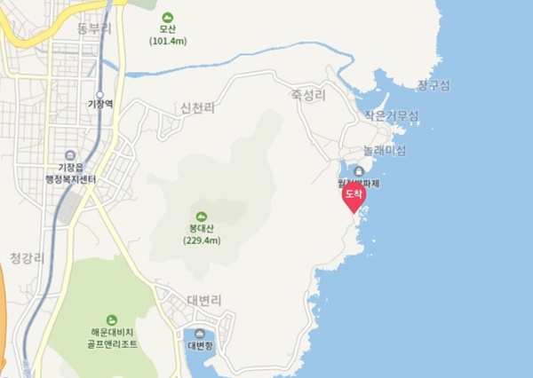 티스토리 지도에 표시가 되지 않아 사진을 캡쳐해왔어요. 기장 대변항으로 가서 죽성방향으로 해안도로를 따라가다보면 채플린카페가 나온답니다. 저는 대변항까지 가서 해안도로로 안가고 마을 골목을 들어서서 헤매다 기장으로 나와서 다시 죽성으로 갔답니다. 꼭 대변항에서 해안도로로 가셔야 해요