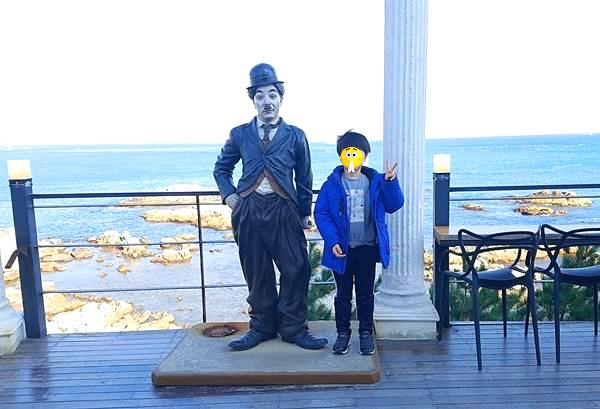 채플린카페답게 찰리채플린이 서 있어서 기념촬영도 했답니다. 멋지네요.