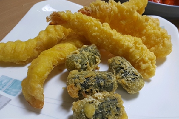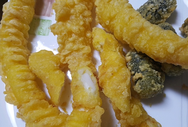 튀김 갯수가 몇 개 되지 않지만 사실 잘라서 담아보니 다른 튀김보다 훨씬 양이 많았어요. 먹고 싶은 것을 몇 개 골라왔는데 알고보니 제가 좋아하는 것만 담았어요.