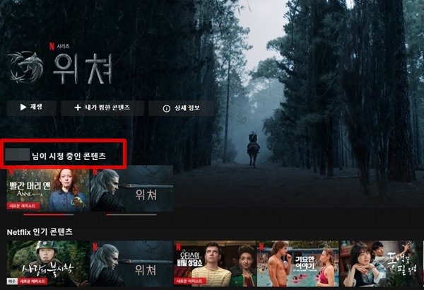 넷플릭스 계정등록 후 로그인하시면 이제 본격적으로 사용하시면 됩니다. 넷플릭스 메인화면에 '□□□ 님이 시청중인 콘텐츠'가 나와 본인이 시청중이던 콘텐츠가 무엇이 있는지 알 수 있도록 되어 있어요.