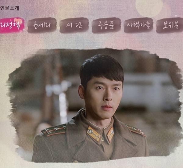 리정혁의 역 현빈은 북한 총정치국장의 두번째 아들이며, 현재 민경대대 5중대의 대위입니다. 불의와는 절대 타협하지 않는 원리원칙 주의자에요. 어릴 적 꿈은 피아니스트가 되고 싶어 스위스 유학도 다녀왔지만 형인 리무혁이 의문의 사고로 죽자 형을 대신해서 군인이 되었죠. 그러다 하늘에서 떨어진 윤세리와의 만남으로 스토리가 본격적으로 시작이 됩니다.