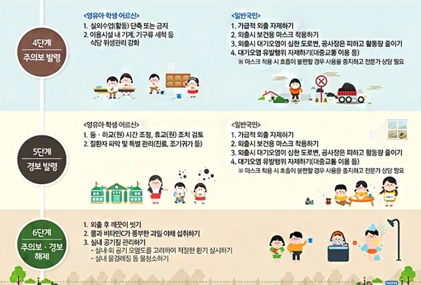 1.영유아·학생은 실외수업활동 단축 또는 금지