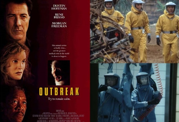 영화 OUTBREAK 에 나오는 '에볼라바이러스' 도 박쥐에서 시작되었습니다. 에볼라바이러스는 치사율이 90%에 이르고 많은 학자들인 에볼라바이러스의 매개체로 박쥐를 의심하고 있습니다. 아프리카 원숭이들이 그 지역에 서식하는 과일박쥐와 치열한 먹이싸움을 벌이는데 이때 에볼라바이러스에 감염되었고, 감염된 원숭이를 잡아먹은 어떤 동물이 사람과 접촉하여 전파되는 이른바 스필오버가 된 것입니다.