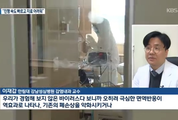 한림대 감염내과의 이재갑의료진은 우리가 경험해보지 않은 신종바이러스다 보니 오히려 극심한 면역반응이 역효과로 나타나서 기존의 폐손상을 악화시키거나 심장기능을 떨어뜨린다거나 전신의 여러 장기 기능을 떨어뜨릴 수 있습니다. 주로 면역이 항진(활성) 되어 있는 젊은 사람이라든지 건강한 사람에서도 중증폐렴을 야기할 수 있습니다. 라고 했다.
