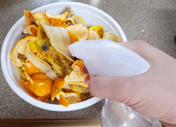 음식물 쓰레기에도 EM발효액을 활용할 수 있는데요. EM발효액을 뿌려주시면 냄새도 덜 나고 곰팡이가 피지 않습니다. 특히 여름철 과일껍데기에서 생기는 초파리나 날파리가 생기지 않습니다. 그리고 음식쓰레기통을 다 비우고 씻어놓아도 냄새가 남아있죠. 그럴 때는 EM발효액에 계피를 우린 물을 섞어 분무기로 뿌려주면 냄새제거에 더 효과적입니다.