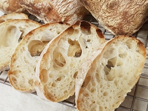치아바타를 잘 만드는 방법은 발효된 반죽이 구멍이 숭숭나야 잘된 것입니다. 그렇지 않으면 딱딱하고 무거운 빵을 먹게 될지도 모릅니다. 저도 만들면서 초반에 여러 번 실패를 한 경우가 있었는데 베이커리 초보에겐 발효가 많이 어려워요. 발효시키는데 시간을 너무 아끼지 않는 것이 최선일지도 모릅니다.