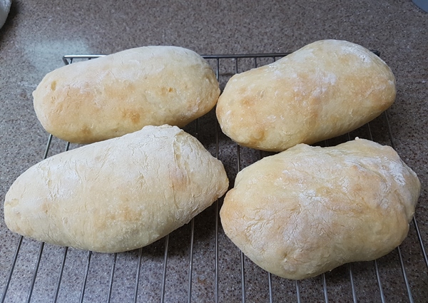 치아바타를 먹어보시면 아시겠지만 바게트와는 다릅니다. 겉으로는 크러스트해서 바삭한 것이 바게트와 같아보일지 모르지만 속은 치아바타가 더 쫄깃하고 촉촉한 식감에 고소한 맛이 더 훌륭하죠.