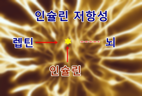 렙틴호르몬이 충분히 분비가 되었더라도 식욕이 억제되지 않을 때가 있습니다. 충분히 분비가 된 렙틴호르몬이 뇌의 호르몬을 담당하는 시상하부에 지방세포가 충분하고 배부르다는 신호를 전달해야 하는데 그렇지 못하기 때문입니다. 뇌에 전달하지 못하도록 방해를 하는 원인인 '인슐린 저항성' 이 생겼기 때문입니다. 이 때 식욕이 폭발하게 되어 끊임없이 음식을 탐하게 되어 식욕이 억제되지 않습니다.