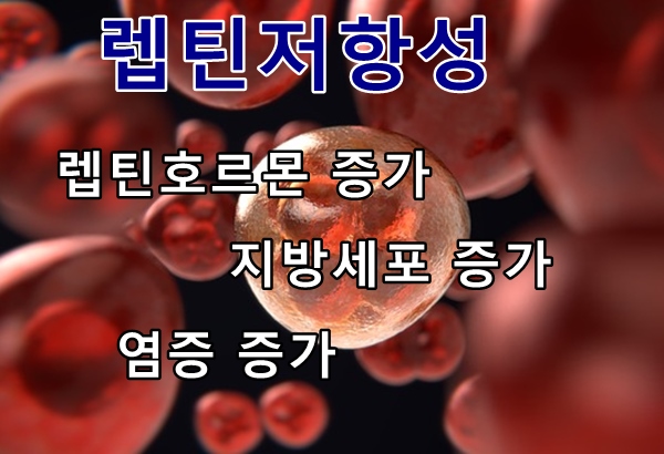 인슐린의 저항성으로 렙틴은 뇌에 전달하기 위해 더 많은 렙틴을 분비를 증가시키려고 할 것입니다. 렙틴호르몬을 증가시키기 위해서는 지방세포를 더 많이 만들어내고 지방세포가 많을수록 살이 찌고 염증도 더 늘어나게 되죠. 염증이 증가하면 렙틴호르몬이 증가하고 지방세포를 만들고 염증을 만들어냅니다. 이러한 순환고리처럼 악순환이 됩니다. 렙틴저항성이 결국에는 비만의 원인이 되는 것이죠.