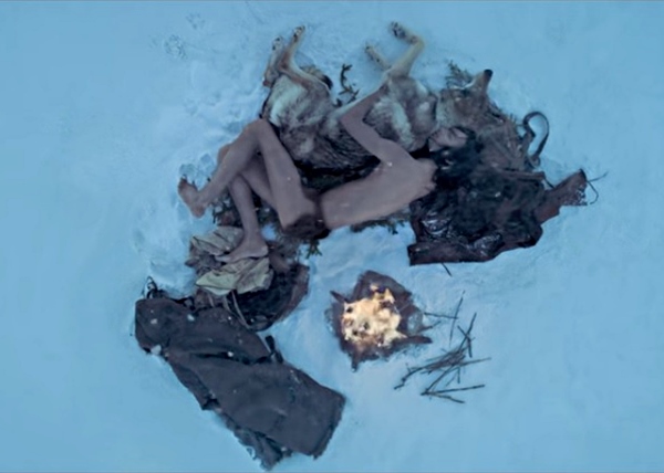 얼음이 깨지고 물 속에 빠진 케다는 얼음을 깨려고 발버둥치고 알파는 얼음속에 갇힌 케다를 구하려합니다. 날카로운 무기로 얼음을 뚫고 빠져나오는 케다를 물어 끌어올립니다. 케다는 본능적으로 불을 피워 젖은 옷을 벗고 늑대를 안아 체온을 유지합니다. 케다와 알파의 진심어린 사랑이 느껴지는 부분이었어요. 케다는 이제 알파를 보내줄 수 없습니다.