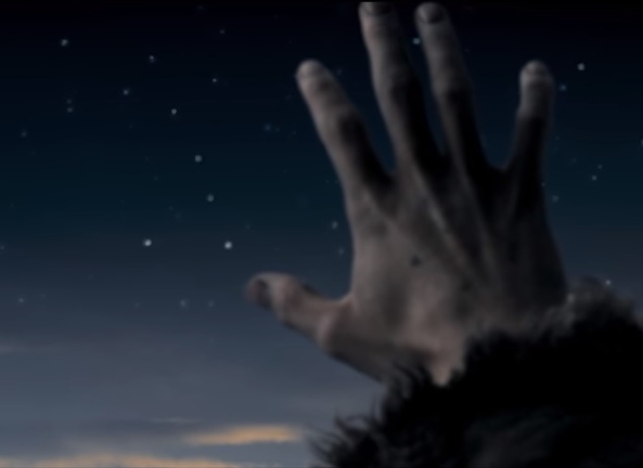 어두컴컴한 밤 동굴에서 하룻밤을 지내는 부족들은 몸에 타투를 남깁니다. 손등에 북두칠성 자리를 새겨 집으로 인도할 방향의 표식을 가르쳐줍니다. 이것이 케다가 나중에 집을 찾아가는 유일한 나침반이죠. 동굴입구에서 하늘을 바라보며 북두칠성을 바라볼 때 어디선가 늑대 울음소리가 들립니다. 늑대의 우두머리를 가리키며 저놈이 알파라고 알려줍니다.