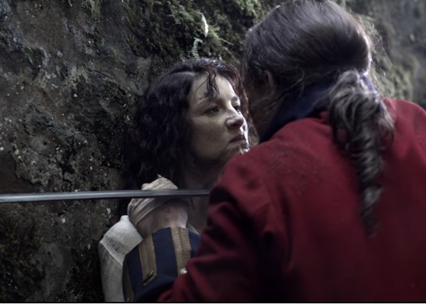 재커바이트의 무리라는 것을 알게 된 클레어에게 두걸이 다가와 영국군의 첩자인지 의심을 합니다. 하지만 클레어는 단호하게 첩자가 아니라고 하죠. 그때 영국군의 레드코트의 포스터 중위가 다가와 그녀에게 두걸과의 관계를 묻습니다. 영국의 여인이 스코틀랜드인과 다니는 것이 이상했던 것이죠.