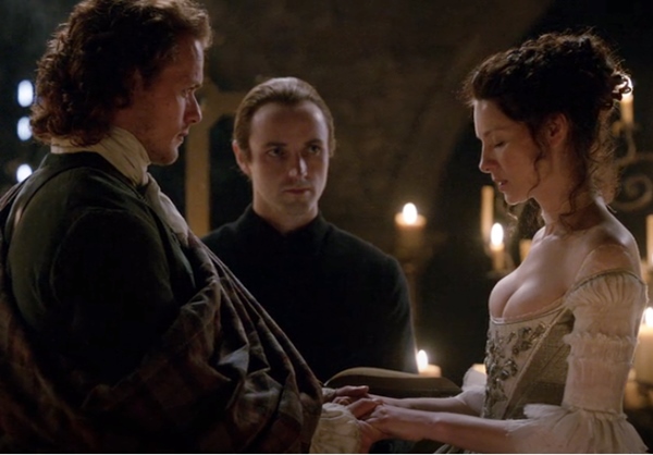 다음 날 해가 질 때 그녀를 포트 윌리엄으로 데려와야 한다고 합니다. 만약 이 약속을 어길 경우, 두걸에게 벌을 내릴 것이라 하지요. 두걸은 클레어를 넘겨줄 수 없습니다. 그들이 재커바이트 군자금을 모으는 장면을 알게 된 이상말이죠. 그래서 영국의 법이 통하지 않게 스코틀랜드인으로 만드는 방법밖에 없었습니다. 클레어와 결혼시키는 것이죠. 그녀의 신랑은 바로 제이미!