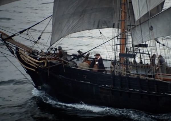 크레이그 나 문으로 달려가는 클레어. 다른 세상에서 프랭크도 크레이그 나 문으로 와 클레어를 소리쳐 부릅니다. 프랭크의 목소리가 들리는 클레어는 울부짖으며 돌기둥을 만지려 하는 찰나에 레드코트에게 붙잡히고 맙니다. 끌려간 곳은 다시 블랙 잭 랜들 대위였습니다. 그곳을 벗어나려 랜들 대위의 뒤를 봐주는 후원자 샌드링엄 공작의 이름을 대지만 곧 그녀가 잔꾀를 부린다는 것을 알게 됩니다.