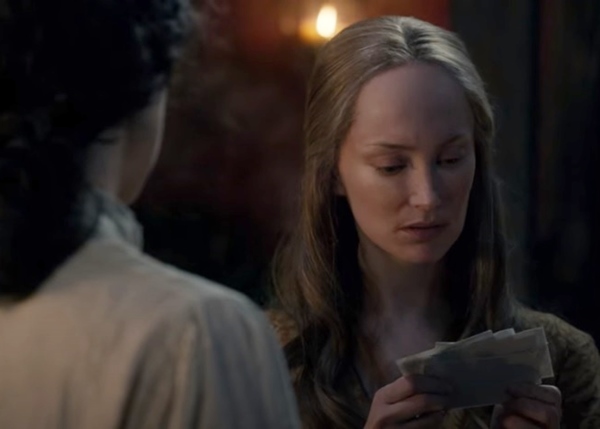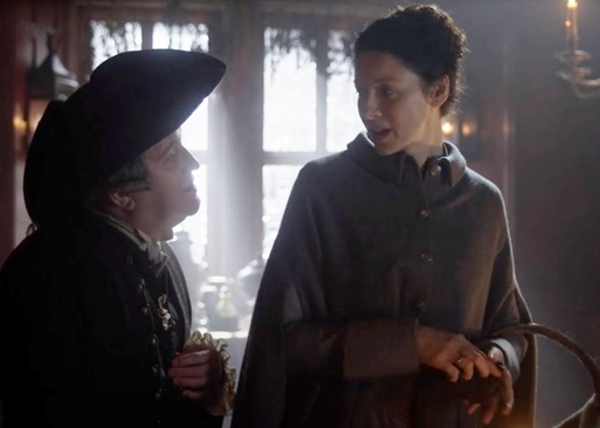밀수업을 눈감아 주던 퍼시벌 경이 제이미가 준 이익금을 더 받으려고 제이미의 밀수업을 파낼려고 합니다. 그의 심복이 제이미의 방을 뒤지는 것을 클레어가 목격하죠. 클레어에게 장부를 달라며 덮치려는 것에 그녀가 저항하다 그를 밀어버렸습니다. 그리곤 그 남자는 바닥에 머리를 박고는 정신을 잃어버립니다.