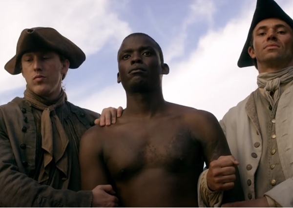 제이미와 다시 재회한 클레어는 서로 다시는 떨어지지 않겠다고 약속합니다. 아르테미스호는 그렇게 자메이카에 도착하게 됩니다. 도착하자 노예시장에서 이안을 찾아나섭니다. 하지만 모두 흑인들만 있을 뿐 이안을 찾지는 못했죠. 노예시장에서 값을 매기고 있는 한 노예를 보고 클레어는 분노가 치밀어 싸움을 일으킵니다. 제이미가 클레어 이름으로 노예를 직접 사서 자유롭게 풀어주기로 합니다.