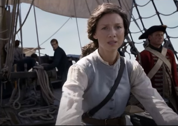 영국군함에서 환자들을 다 치료하고 함장실에서 제이미가 살인혐의로 체포되고 나면 교수형에 처해지게 된다는 것을 알게 됩니다. 제이미에게 알릴 방법을 찾지 못하자 클레어가 치료해준 남자의 부인이 클레어를 탈출하는데 도와줍니다. 육지와 가까운 곳을 지날 때 바다에 뛰어들어 육지에 떠밀려오게 되죠.
