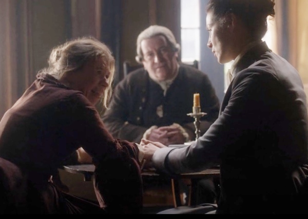 1765년 에든버러에 도착한 클레어는 "알렉산더 맬컴 인쇄 및 서점"을 찾아갑니다. 인쇄소에서 일하던 제이미는 클레어를 보고 기절해버립니다. 서로를 만나 반가워하지만 떨어져있는 세월동안 자신의 삶을 살았기에 서로 서먹하죠. 클레어는 제이미에게 브리애나 사진을 보여주고 그동안 있었던 일들을 말해줍니다. 제이미도 자신에게 아들이 하나 있다는 것을 숨김없이 얘기를 하죠.