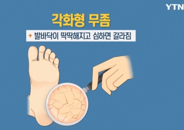지간형무좀과 수포형무좀은 가렵기 때문에 대부분의 사람들이 무좀이라는 것을 알지만 각화형은 인지하지 못하고 방치하는 경우가 많습니다.