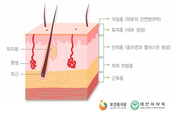 우리 피부의 바깥성분이 표피로 되어 있습니다. 그 표피가 3개의 층으로 나뉘는데 가장 바깥쪽이각질층입니다. 각질은 죽은세포 덩어리인데 피부를 보호하는 제1차 장벽입니다. 죽은 세포니깐 자극에도 반응하지 않고 튼튼하게 버틸수가 있습니다. 만지면 거칠고, 부위별로 두께가 다릅니다.
