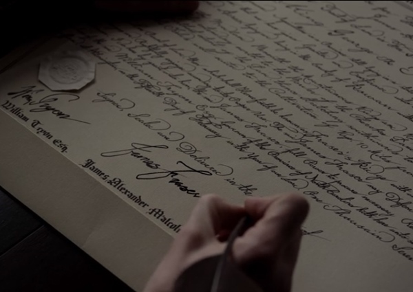 제이미와 클레어는 블루리지 산의 영토제안을 곰곰이 생각하게 됩니다. 클레어는 총독의 제안을 꺼려하는데 총독은 세금징수에 반발하는 규제자들을 제지하기 위해 왕실에 충성한 사람들을 모아 그들에게 땅을 나눠주고 있는 것입니다. 만약 그 땅을 받게되면 8년후 미국독립혁명이 일어날 때 영국왕실에 충성을 맹세한 사람들은 혁명군과 전쟁을 해야한다고 알려줍니다. 그리고 혁명군에 의해 영토를 빼앗기게 될 수 있다고 하죠.