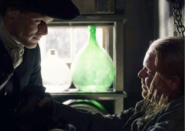 제이미와 클레어는 리버런에 있는 조캐스타이모님댁을 방문하기 위해 강을 따라 배를 타고 가던 중 어느날 밤 강도로부터 보석과 제이미와 클레어의 결혼반지를 빼앗기게 됩니다. 그 강도는 다름아닌 스티븐 보닛이었죠. 이에 큰 충격을 받게 되는 제이미는 자신이 그 때 도와주지 않았다면 이런 일을 당하지 않았을거라 자책을 하게 됩니다. 빈털터리가 된 채 이모님 댁을 방문하게 되지만 이모님은 제이미를 자신의 상속자로 내세웁니다.