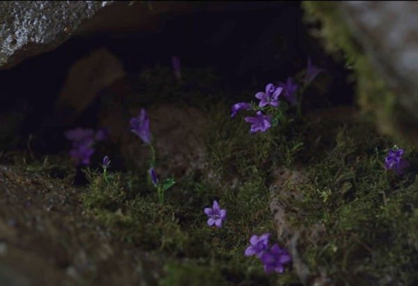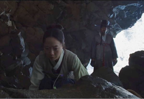 한편 의녀 서비는 세자의 상처를 치료하기 위해 산에 약초를 캐러 가는데 서비에게 관심이 많은 범팔은 그녀를 따라 나섭니다. 산속에서 금지구역인 곳까지 가자 범팔이 이곳은 언골이라며 절대 들어가지말라고 당부합니다. 하지만 서비는 언골이라는 말에 두말없이 달려가죠. 그곳에는 사시사철 안개가 끼는 곳이고 추운 곳입니다. 물을 건너 바위 틈으로 가자 그곳엔 보라색 꽃이 핀 사생초를 발견합니다.