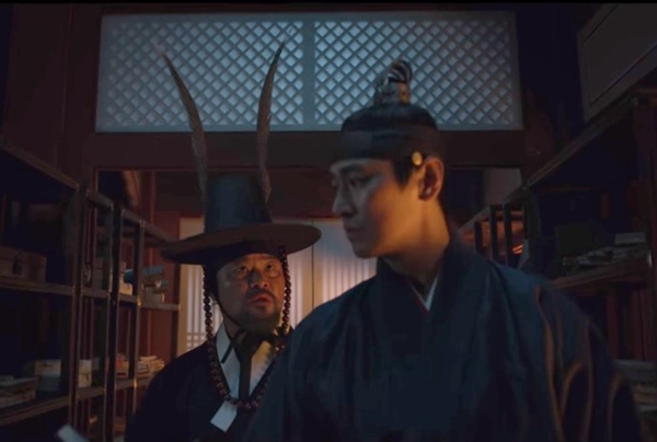 강녕전에 몰래 들어가자 신하들이 전하가 없어졌다고 소근거리는 소리를 듣게 되고 아바마마의 침전으로 향하는데 뒤에서 삐거덕거리며 걸어오는 소리가 들리자 다른 방으로 들어가 주시합니다. 짐승같은 소리에 악취가 나는 괴물의 그림자를 보고 세자는 놀라는데 갑자기 사라져버립니다. 아바마마의 침전으로 향하자 그곳에는 조학주대감이 앉아 있었습니다. 전하는 중전의 침소에 들었다는 거짓말을 합니다.