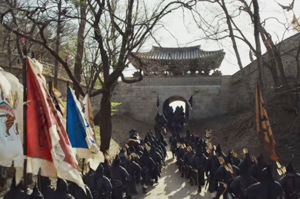 임금이 역병에 걸렸다고 알려지자 중전이 수렴청정을 하게 됩니다. 그리고 중전은 "경상 땅에 창궐한 끔찍한 역병을 다스리기 위해 훈련도감, 어영청, 수어청으로 구성된 중앙군을 급파해 혼란한 민정을 다스릴 것이다" 라고 신하들에게 교지를 내립니다. 중앙군은 상주로 급히 파견되어 상주읍성의 모든 문을 봉쇄하고 문경새재를 비롯해 모든 관문을 봉쇄시켰습니다.