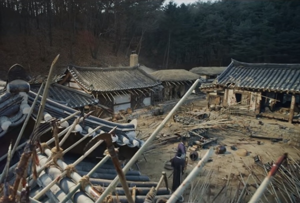 900리 길을 달려온 세자와 무영은 동래근처 금정산에서 한 인가를 발견합니다. 그곳은 폐허가 된 인가인데 지율헌이었습니다. 지율헌은 이승희의원이 병자를 치료하던 곳이죠. 제대로 찾아왔습니다만 건물이 폐허가 되어있고 건물주변으로 죽창이 달려있고 피투성이가 되어 있었습니다. 불길한 생각이 들어 들어가보았지만 생존한 사람은 아무도 없었죠. 그러다 마루를 지나다 부러져 넘어지는데 마루 밑에는 시신들이 겹겹히 쌓여 있었습니다.